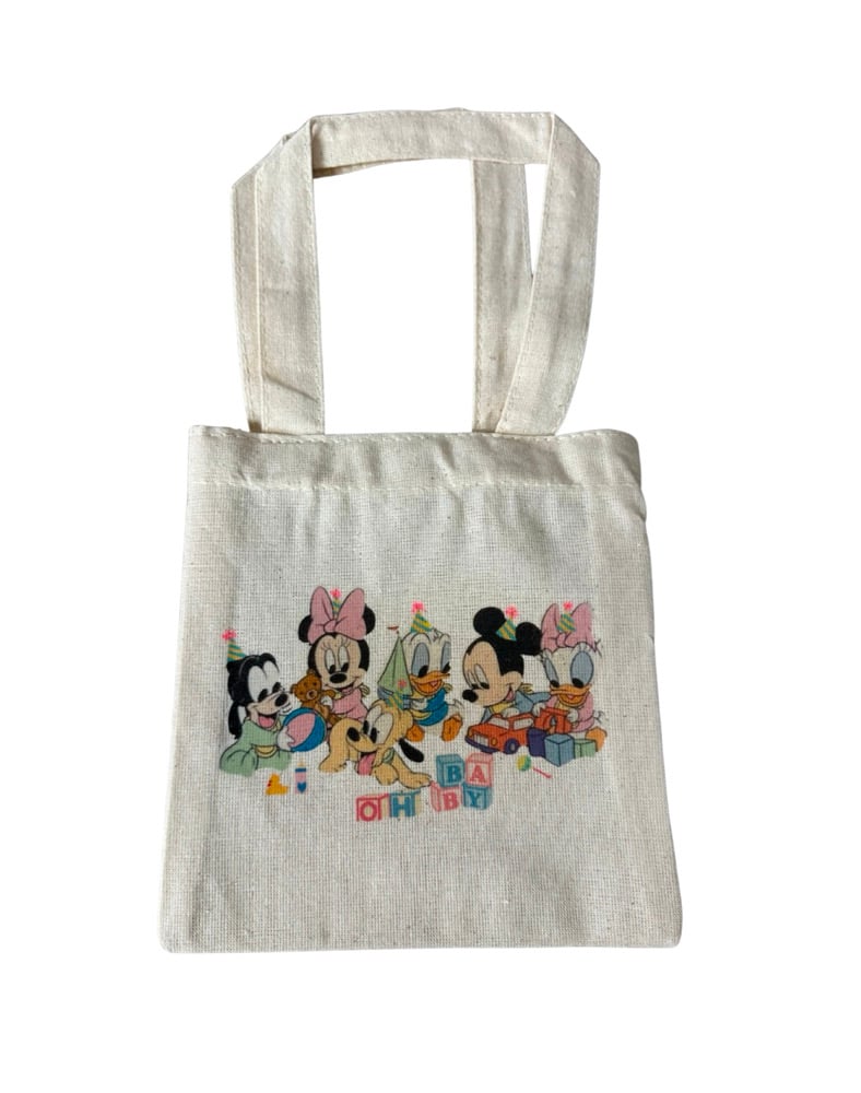 Cute baby Mickey Mouse & friends mini tote bags, perfect for a baby shower! You and your guests will love these adorable party favors!